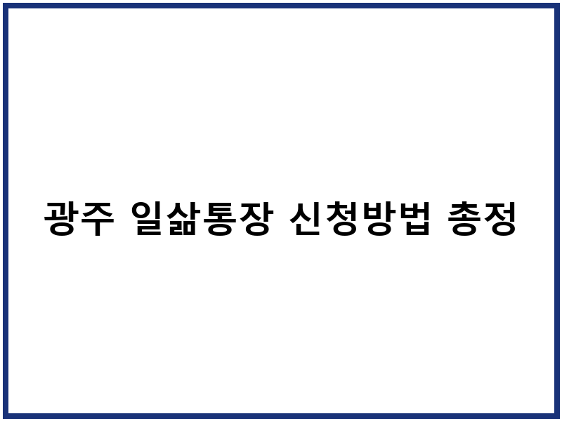 광주 일삶통장 신청 상세 안내