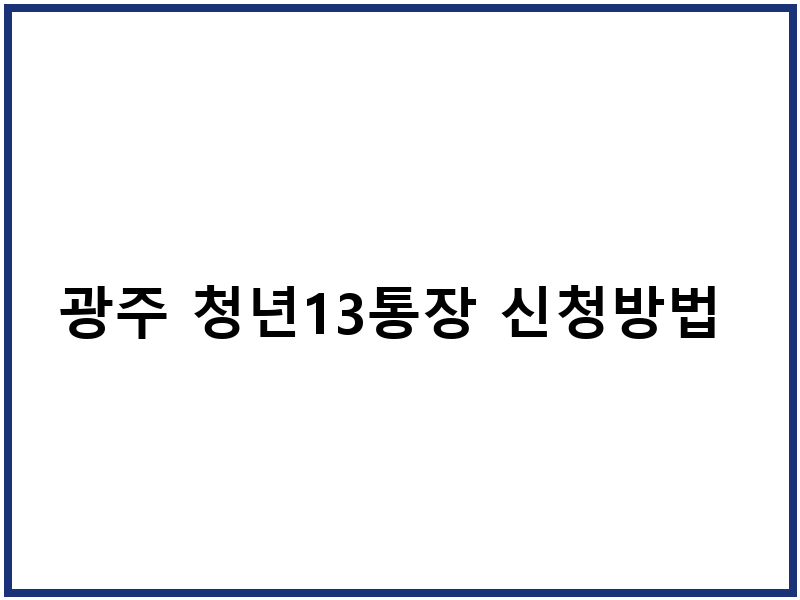 광주 청년13통장 신청 절차 및 방법