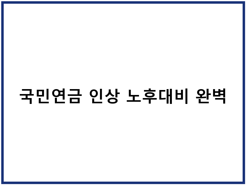 국민연금 인상은 피할 수 없는 현실이지만, 이를 기회로 삼아 더욱 견고한 노후를 설계할 수 있습니다. 지금부터 차근차근 준비한다면, 국민연금 인상으로 인한 부담도 의미 있는 투자가 될 것입니다.