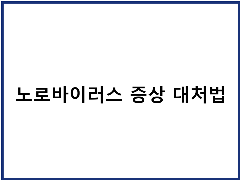 노로바이러스 증상 완화 팁