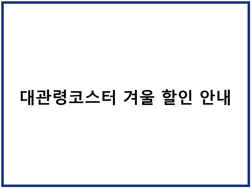 하얀 눈으로 뒤덮인 아름다운 대관령의 겨울, 짜릿한 스릴을 선사하는 대관령코스터 겨울 시즌을 더욱 알차게 즐길 준비 되셨나요? 많은 분들이 겨울 시즌 대관령코스터의 특별한 할인 혜택과 예약 방법을 궁금해하시는데요. 특히나 많은 사랑을 받는 성수기에는 미리미리 준비하는 것이 필수랍니다. 여러분의 즐거운 겨울 여행을 위해 대관령코스터 겨울 할인 예약 방법과 주차장 위치에 대한 모든 것을 꼼꼼하게 안내해 드릴게요.