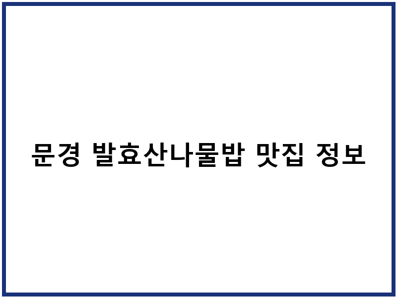 문경 발효산나물밥 맛집 정보