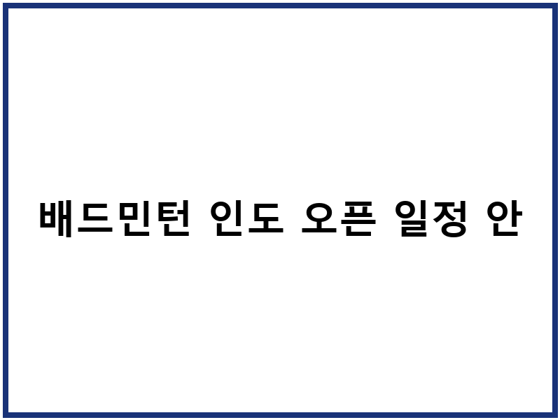 2026 배드민턴 인도 오픈 경기 일정