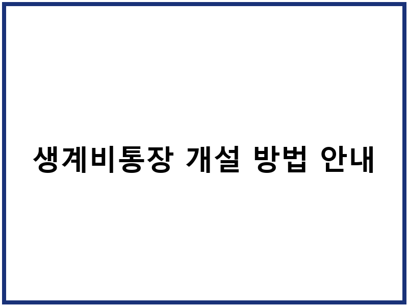 생계비통장 개설 방법, 무엇부터 알아야 할까요?