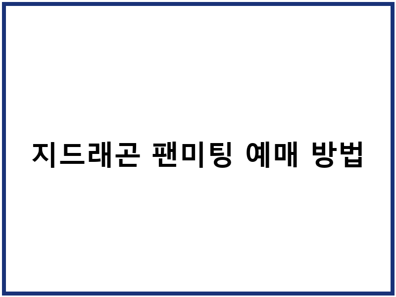 지드래곤 팬미팅 예매 팁
