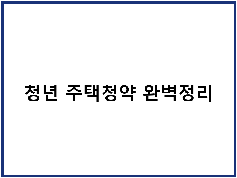 청년 주택청약 신청 절차 및 준비 서류 안내