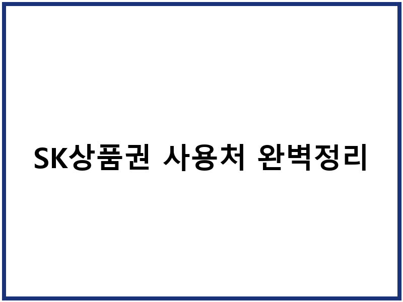 SK상품권은 특정 계열사와 협력업체에서만 사용할 수 있다는 사실을 아셨나요? SK상품권 가맹점은 생각보다 다양한데, 먼저 어느 매장들에서 사용 가능한지 알아두면 정말 유용합니다. SK상품권 사용처를 정확히 파악하면 불필요한 낭비를 줄일 수 있어요.